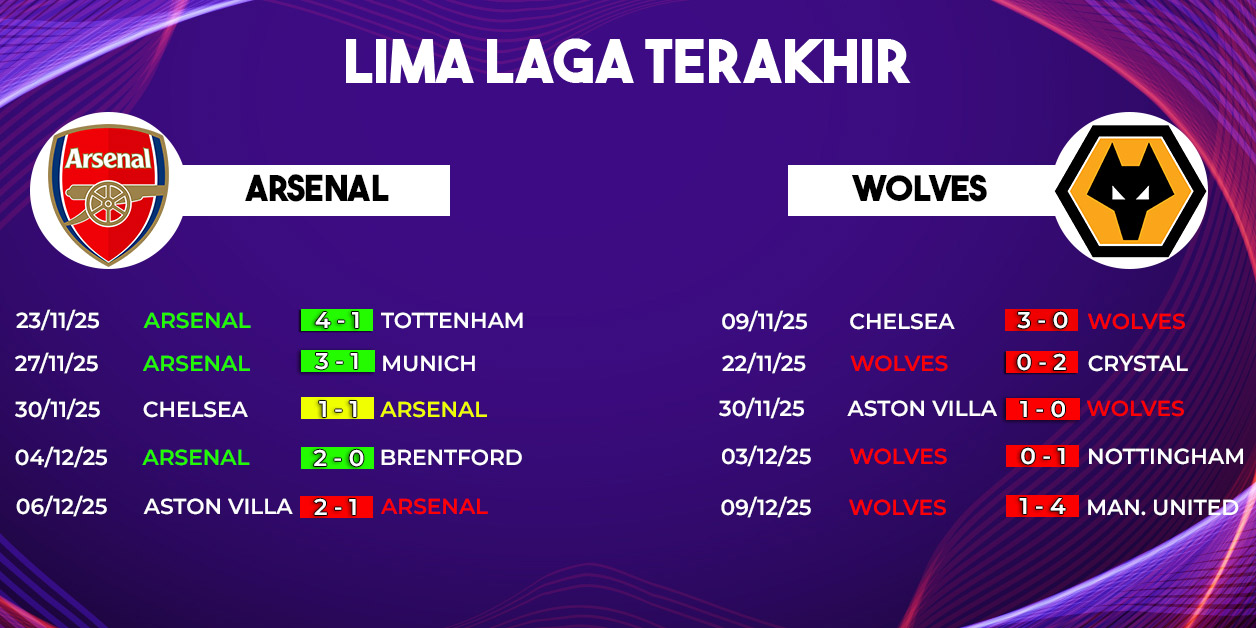 Dengan kondisi kedua tim yang sangat bertolak belakang, laga ini diprediksi berjalan penuh tekanan bagi Wolves dan menjadi kesempatan emas bagi Arsenal untuk memperkokoh posisi mereka di puncak klasemen.