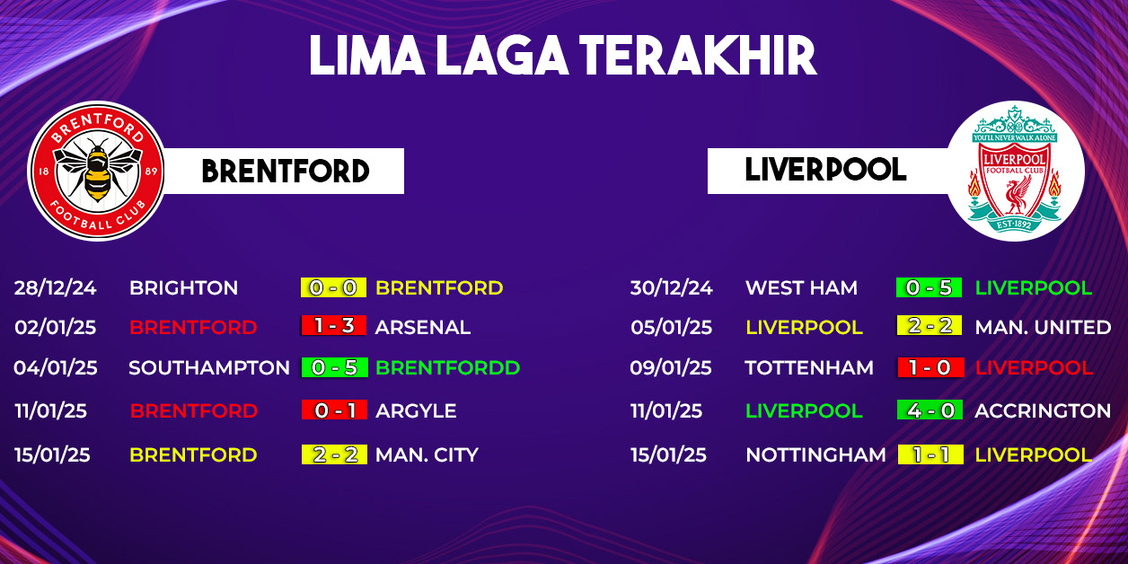 Pertemuan antara Brentford dan Liverpool menjanjikan pertandingan yang penuh drama dan aksi. Dengan masing-masing tim memiliki kekuatan dan kelemahan, siapa yang akan keluar sebagai pemenang? Saksikan langsung untuk mengetahui jawabannya!