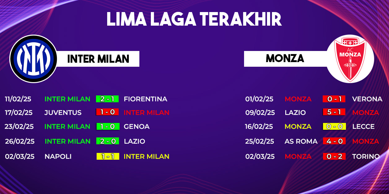 Di sisi lain, Monza datang ke Giuseppe Meazza dengan kondisi yang kurang ideal. Tim asuhan Alessandro Nesta saat ini terpuruk di dasar klasemen dan hanya mampu meraih dua kemenangan sepanjang musim. Situasi semakin sulit karena dalam enam laga tandang terakhir, Monza selalu mengalami kekalahan.
